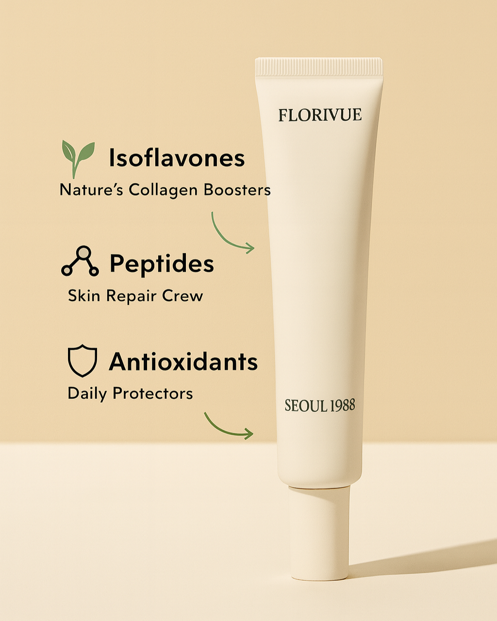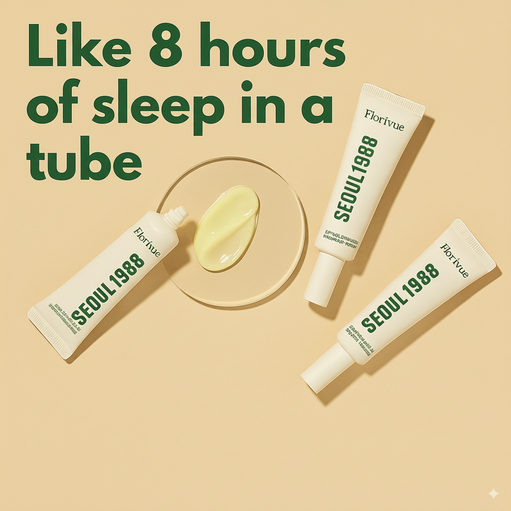 Florivue’s Seoul 1988 Eye Cream is carefully formulated with three proven actives that work in harmony to restore youthful, radiant eyes. Isoflavones stimulate natural collagen production for firmer, plumper skin. Peptides act as the skin’s repair crew, rebuilding the delicate under-eye barrier and reducing fine lines. Antioxidants shield your skin from daily damage caused by stress, pollution, and UV rays. Together, they deliver visible results for dark circles, puffiness, and wrinkles — all without harsh chemicals.